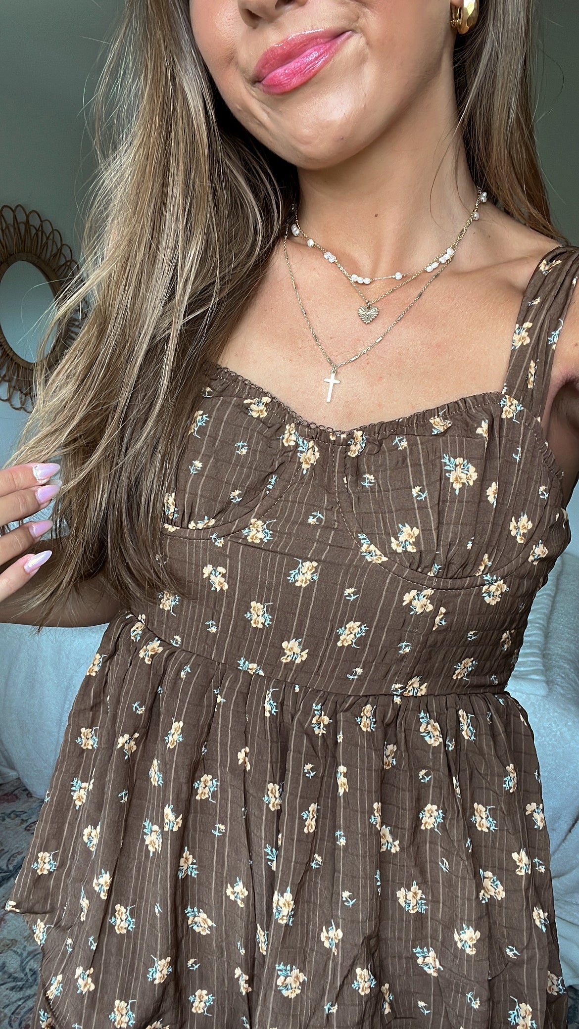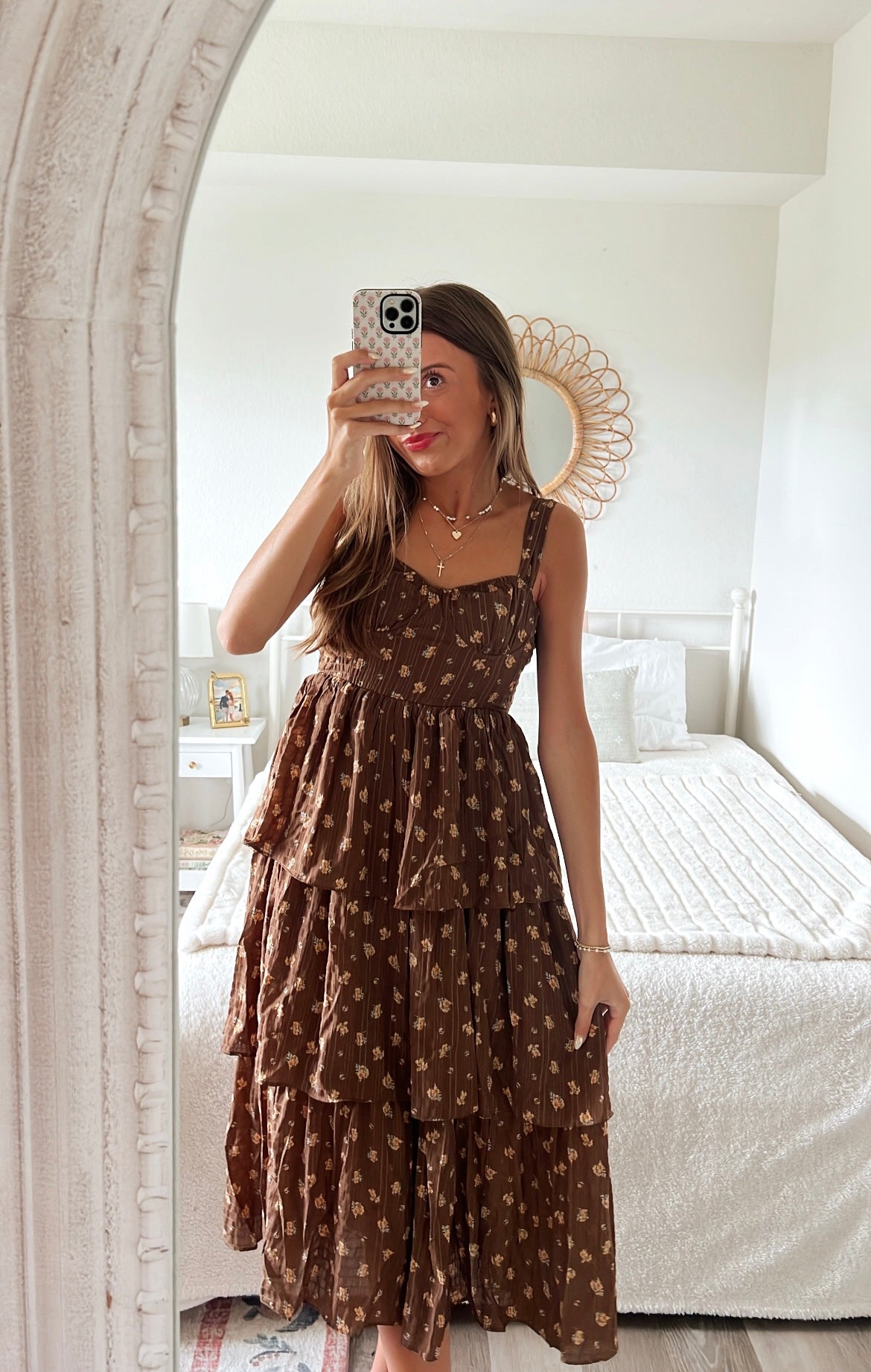 AMBER TIERED MIDI DRESS - BROWN AND BLACK