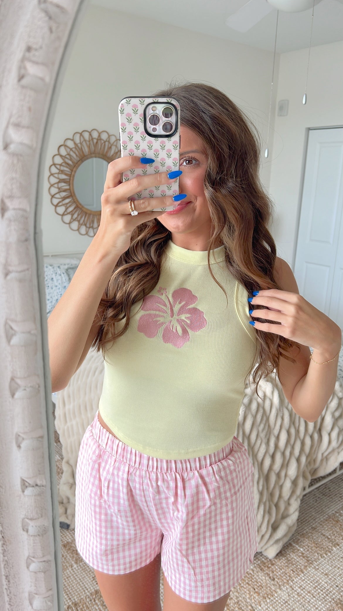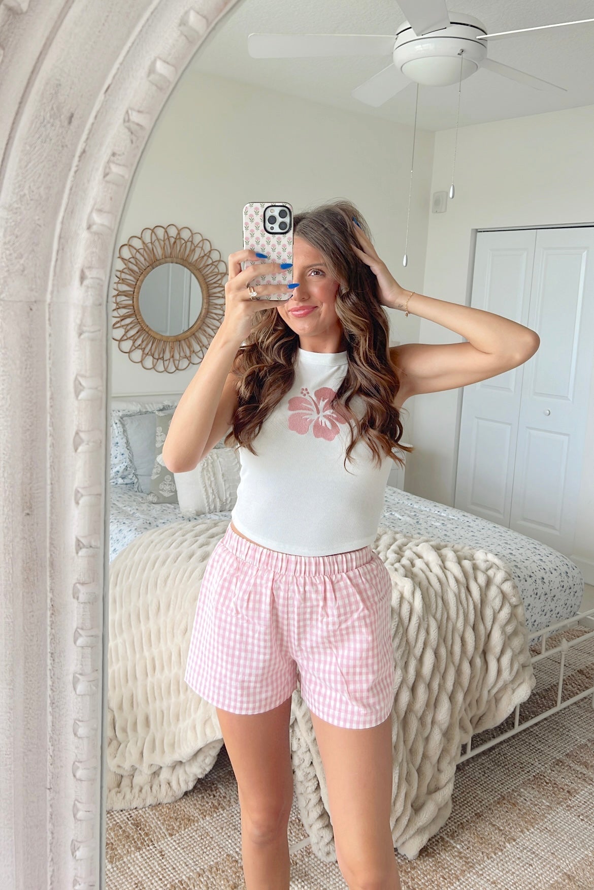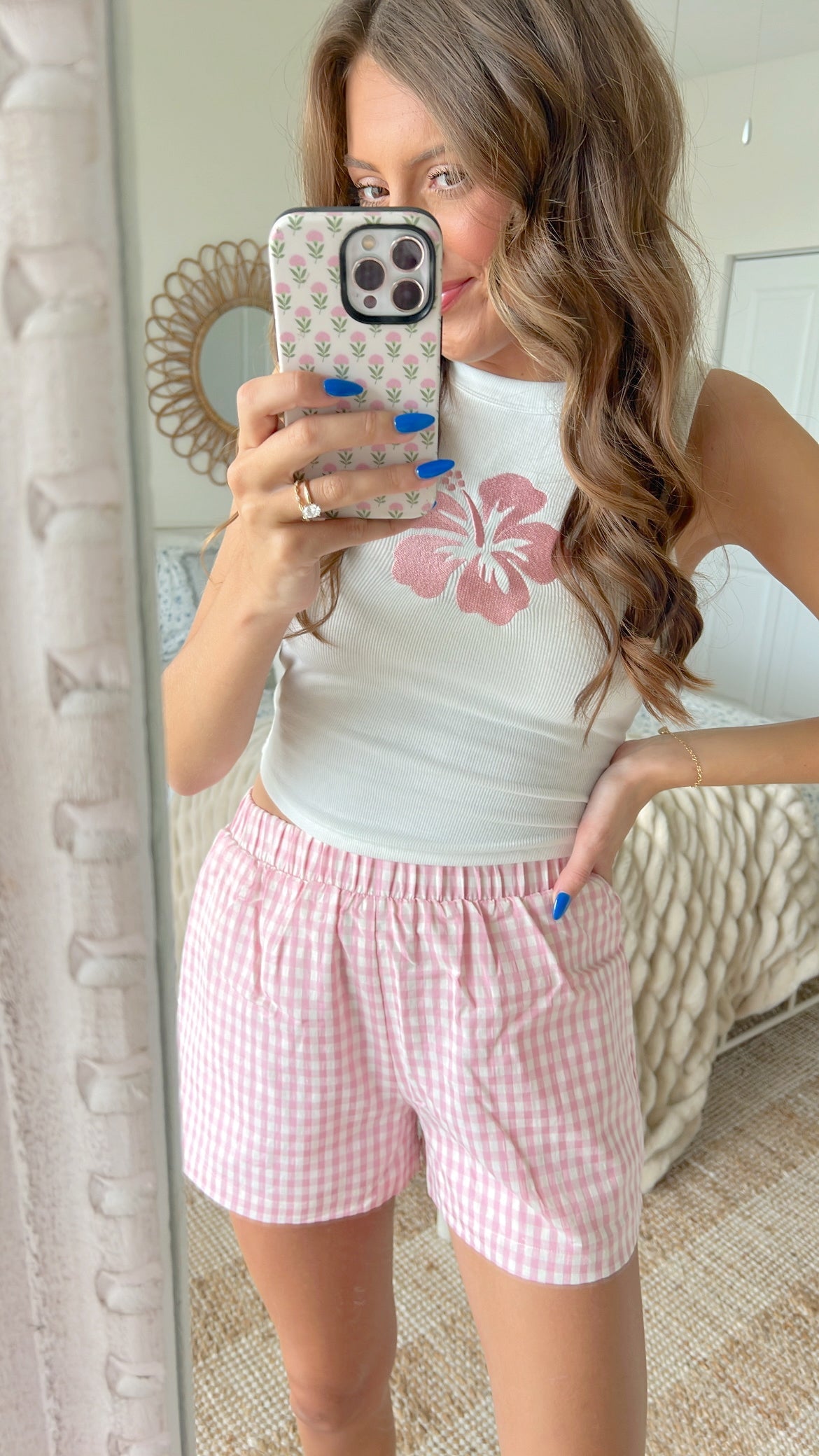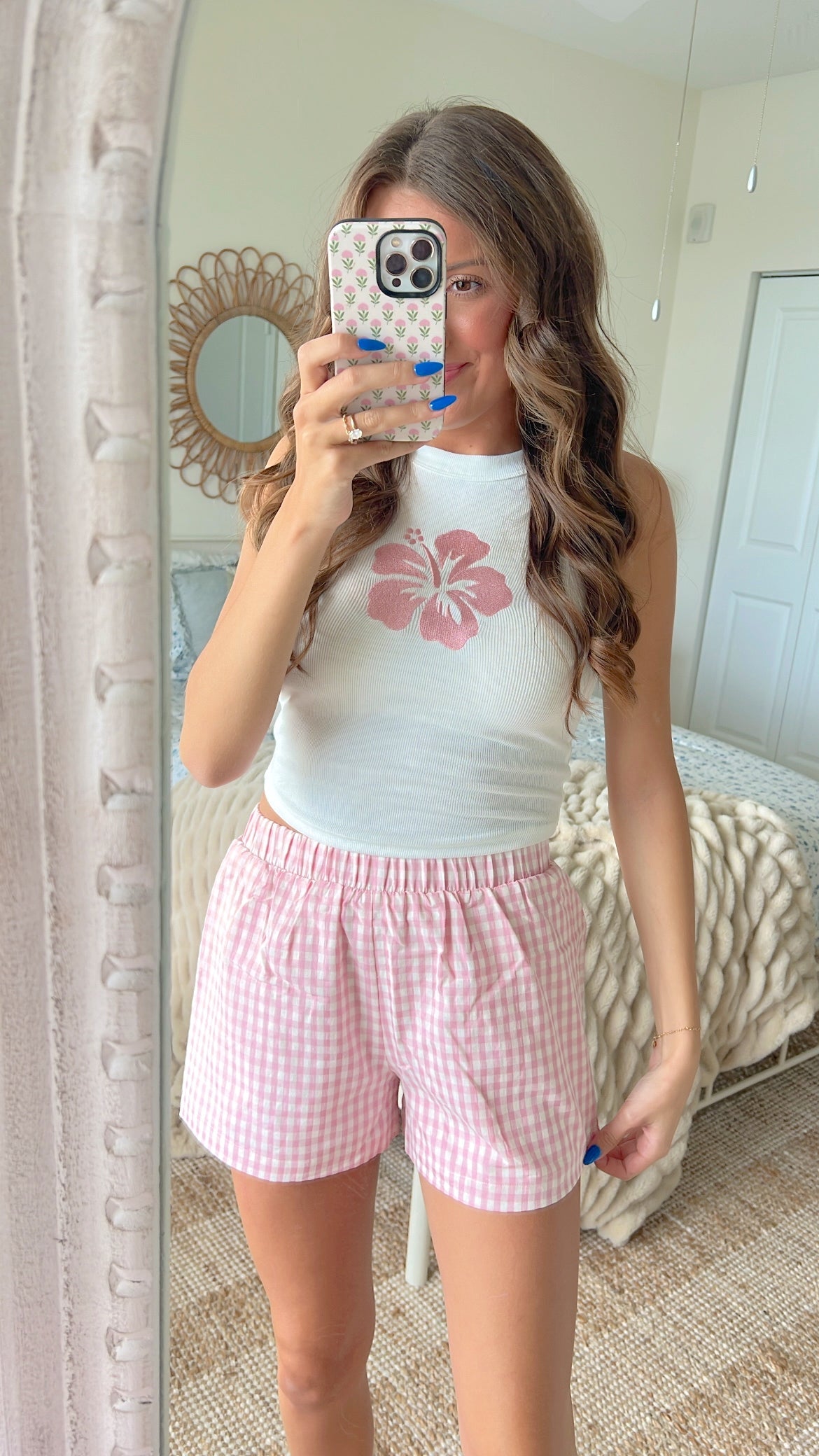 Ivory + pink boxer shorts with elastic waistband. Lined.