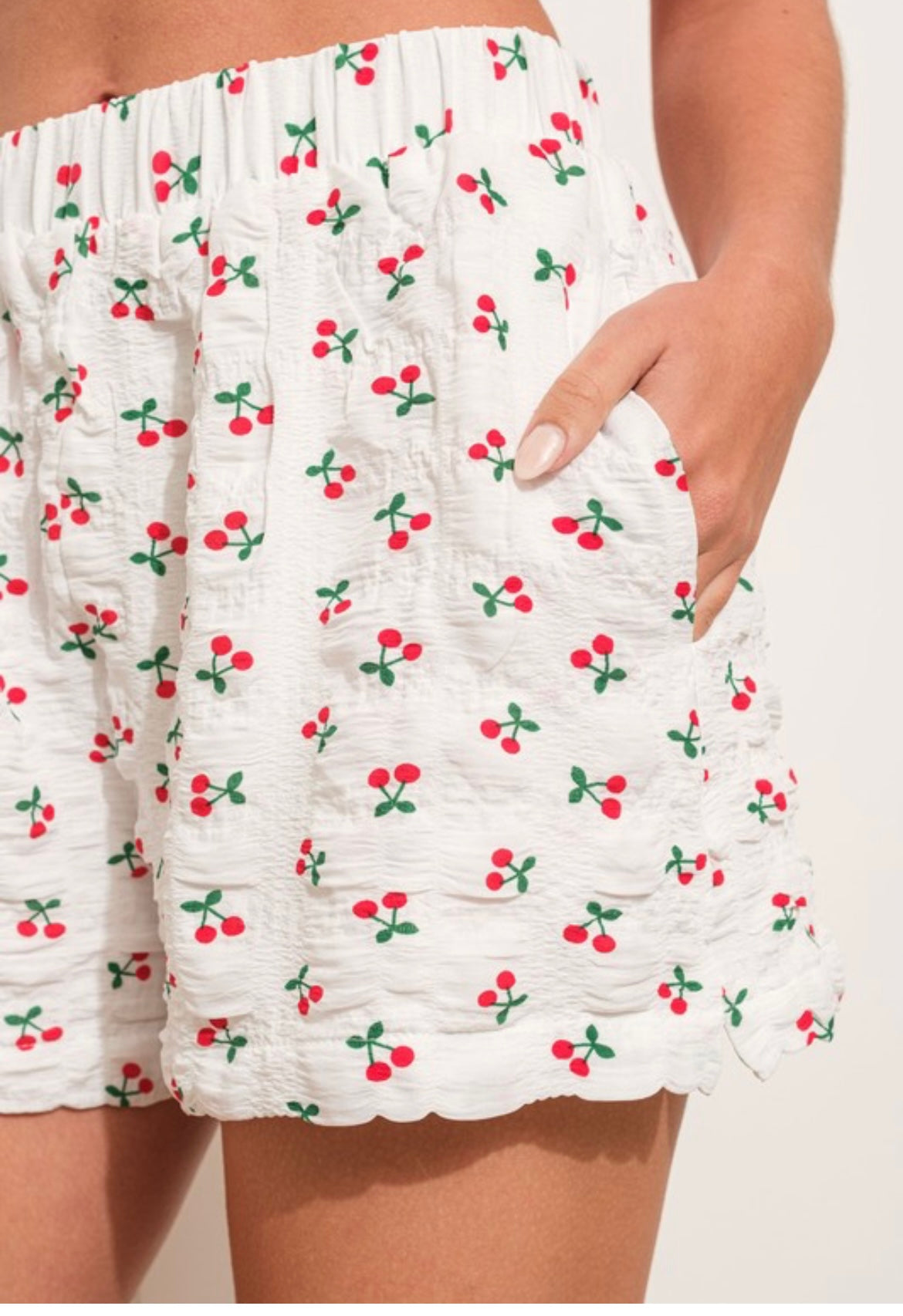 White boxer shorts with cherry detailing