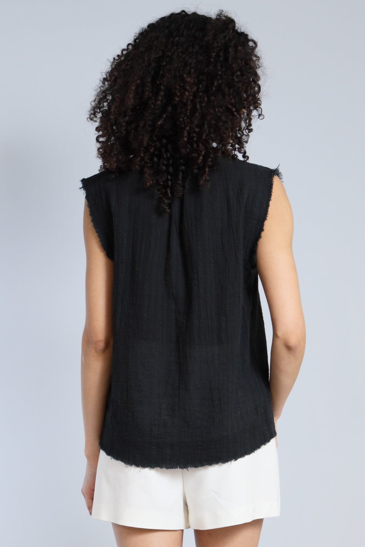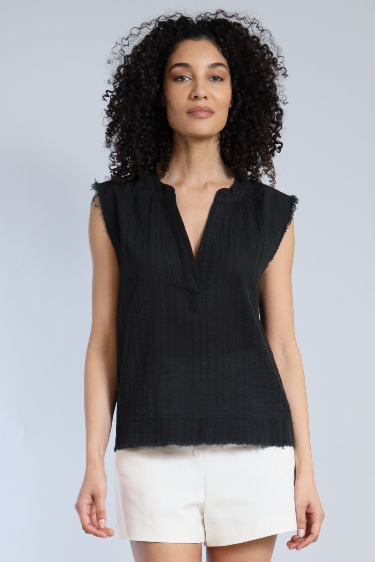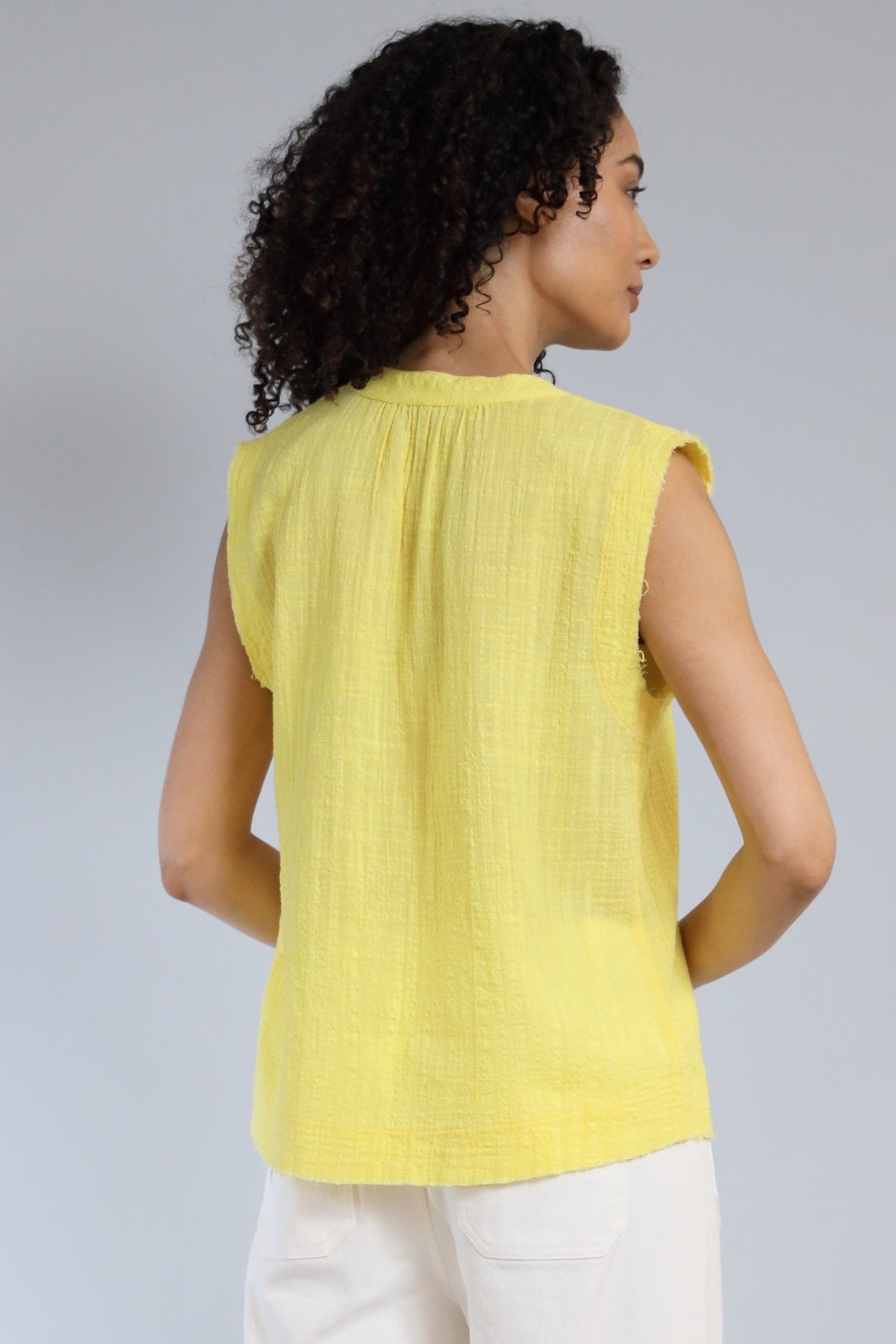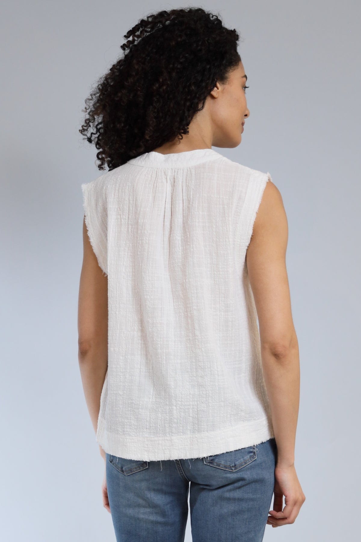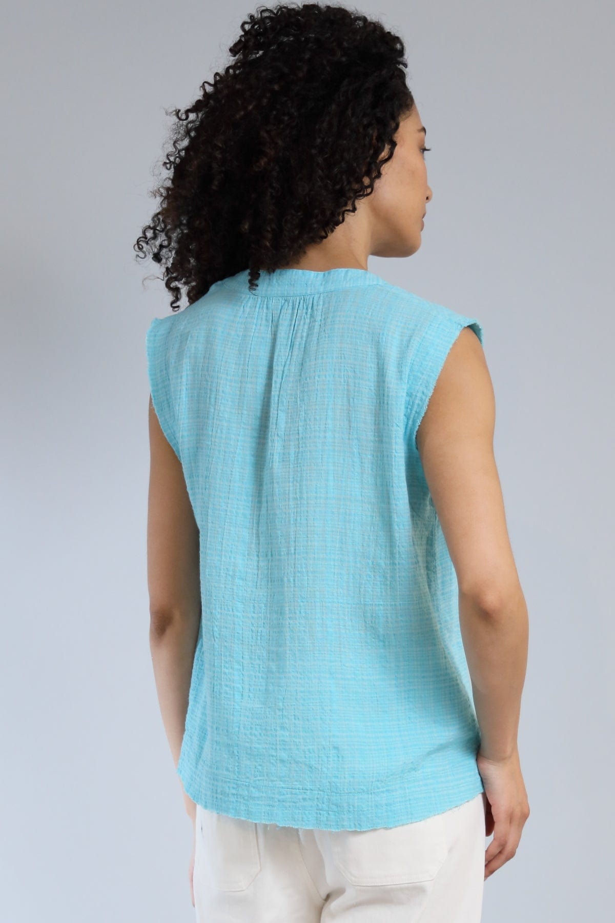 Easygoing comfort with a touch of texture. This top has a relaxed. lived-in feel you'll adore. The sleeveless design is perfect for warmer day. and the henley neckline adds a casual sporty vibe.