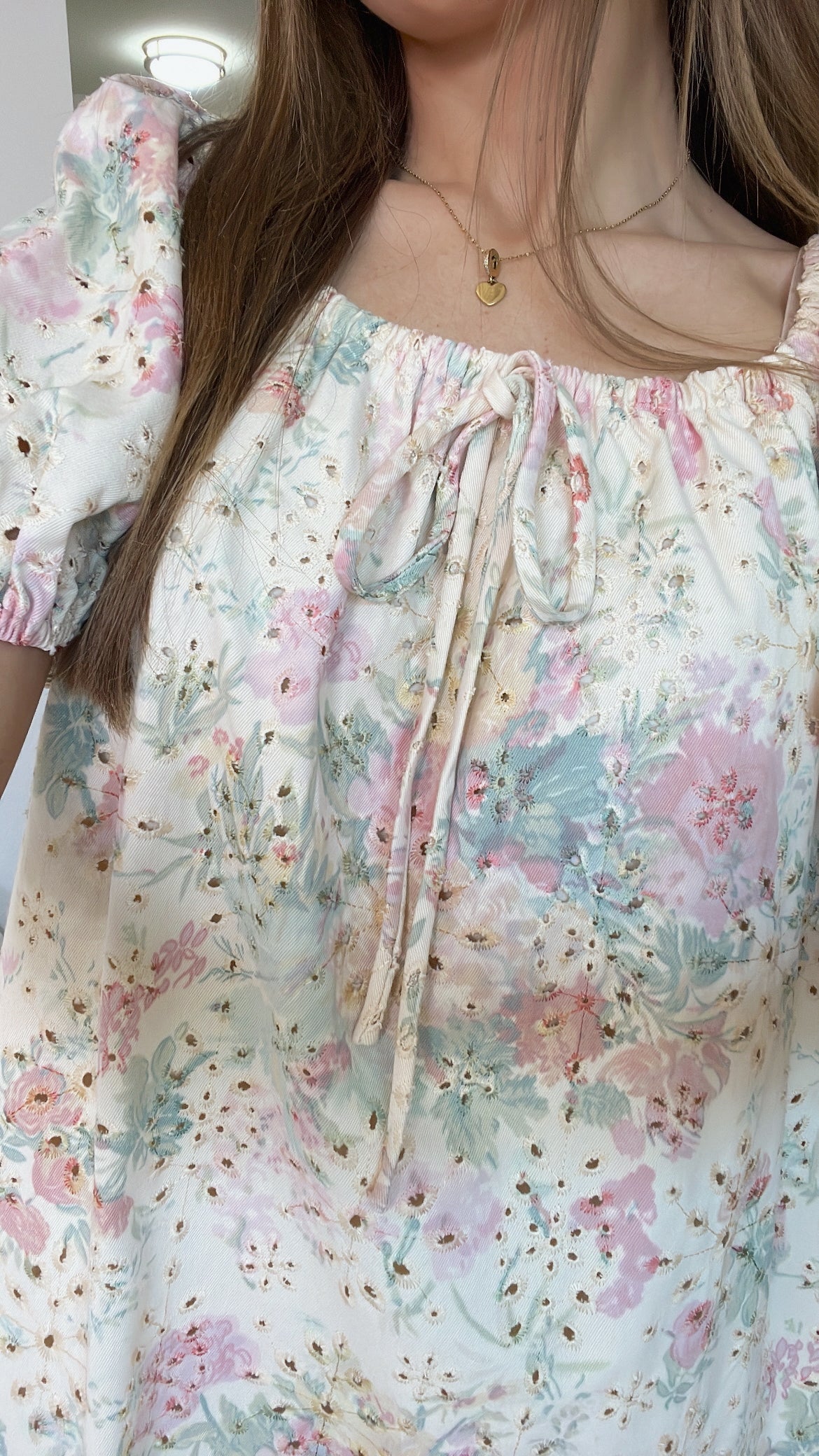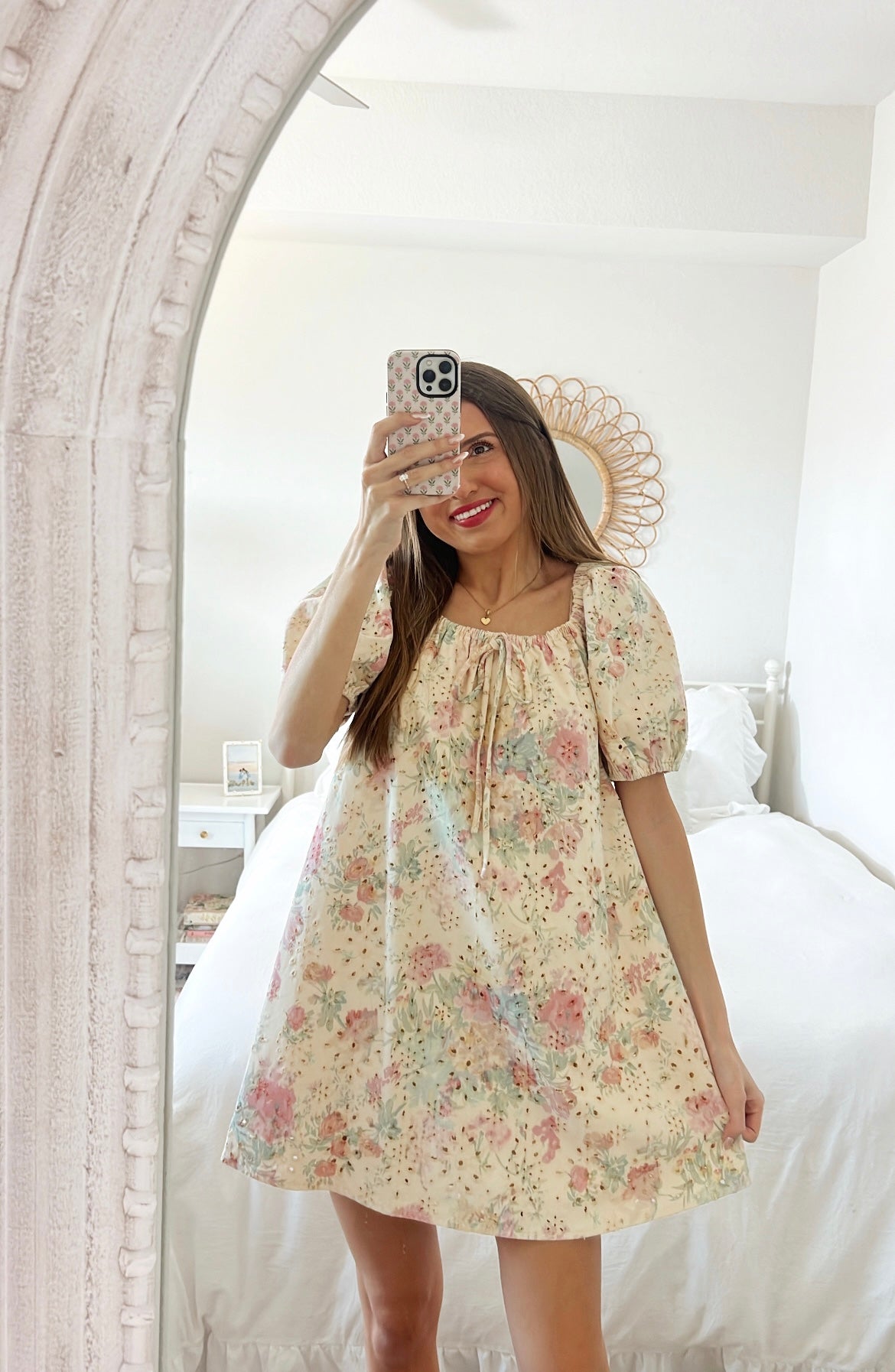 EYELET FLORAL MINI DRESS