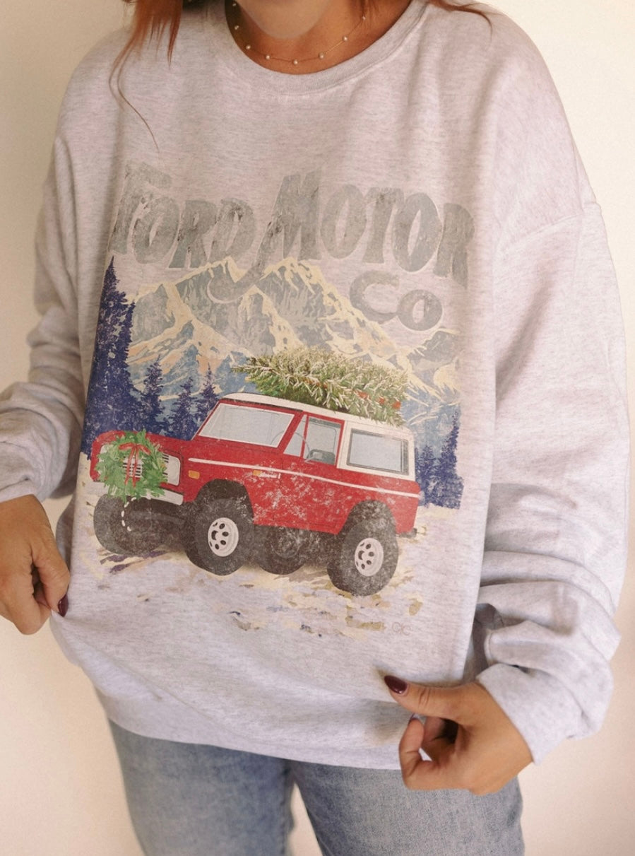 Grey winter bronco crewneck. Jerzee brand sweatshirt