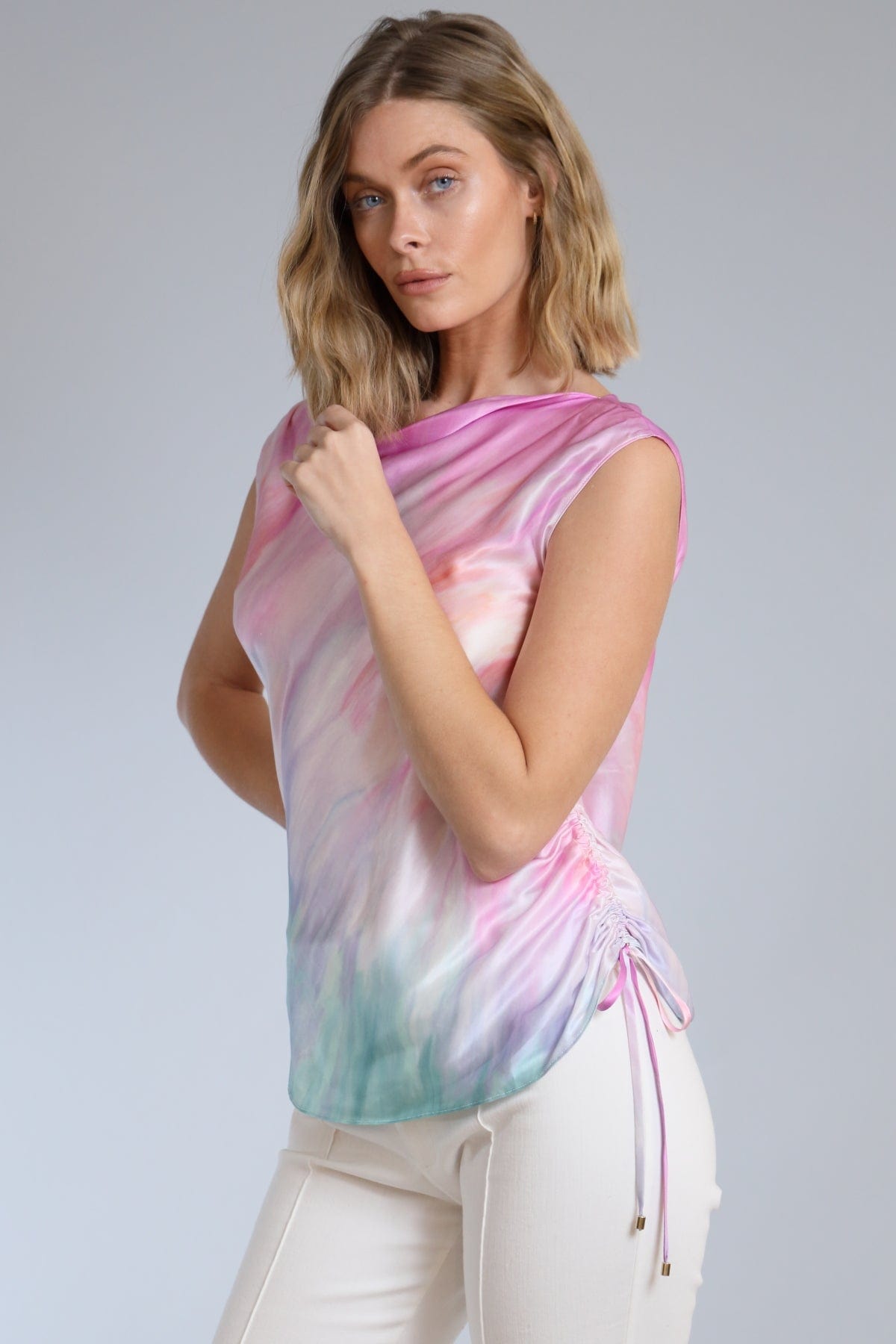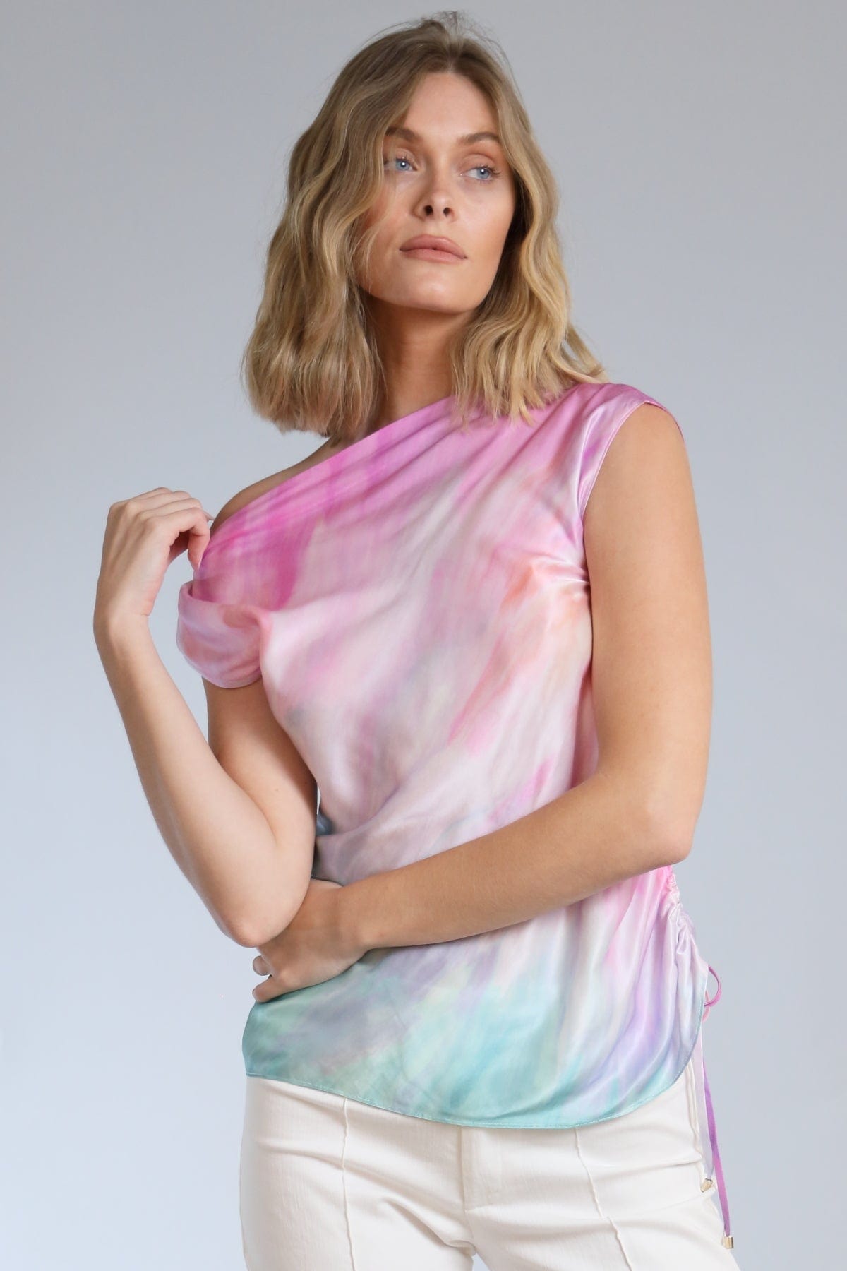 Embrace vibrant style with our Ombre Tie Dye Asymmetrical Top. Featuring a trendy ombre effect. unique asymmetrical hemline. and a flattering side ruching for a touch of texture and shape. Perfect for adding a pop of color and effortless cool to any outfit.