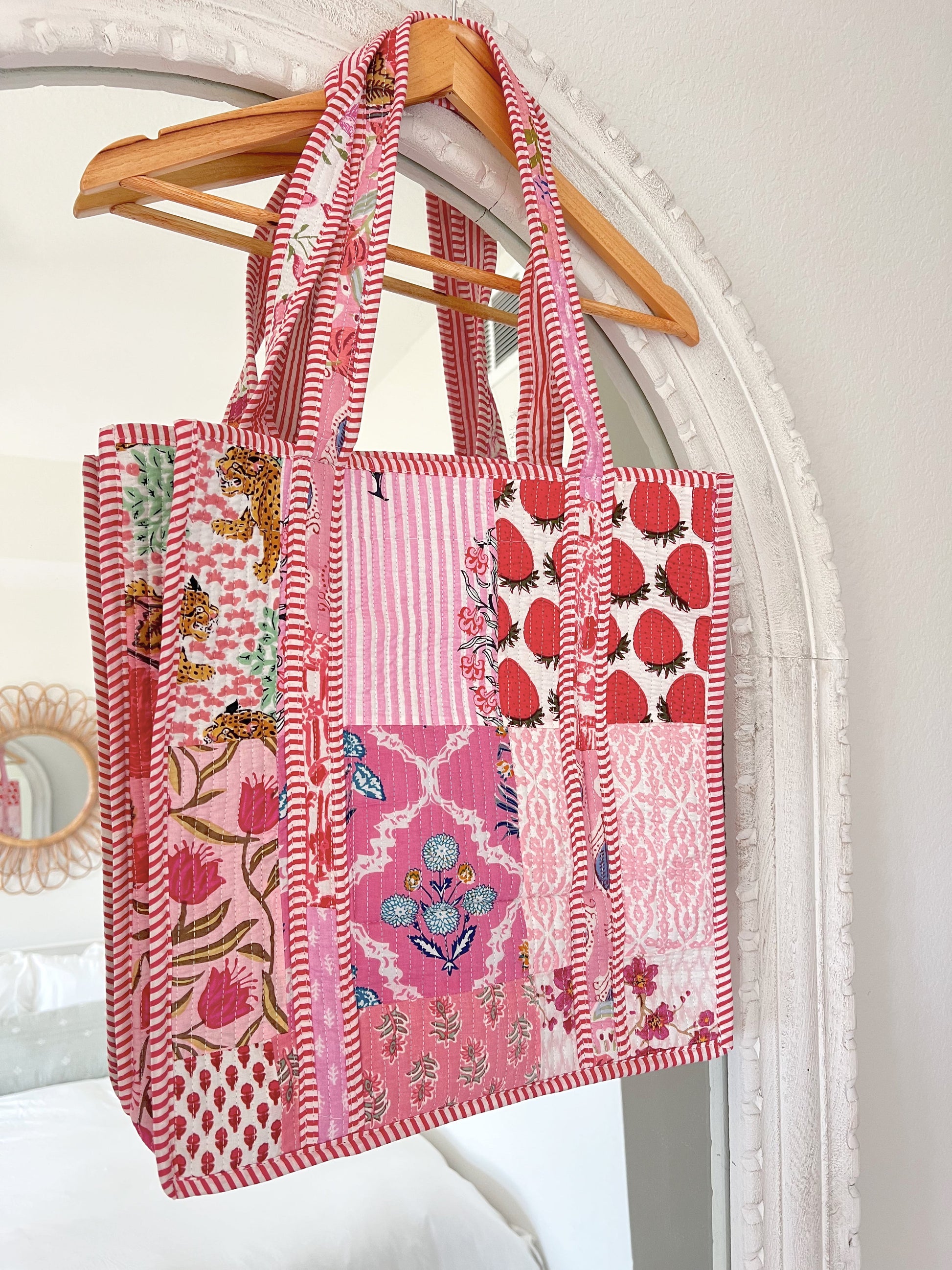 Meet your new everyday patchwork tote bag featuring inside pocket for phone etc.