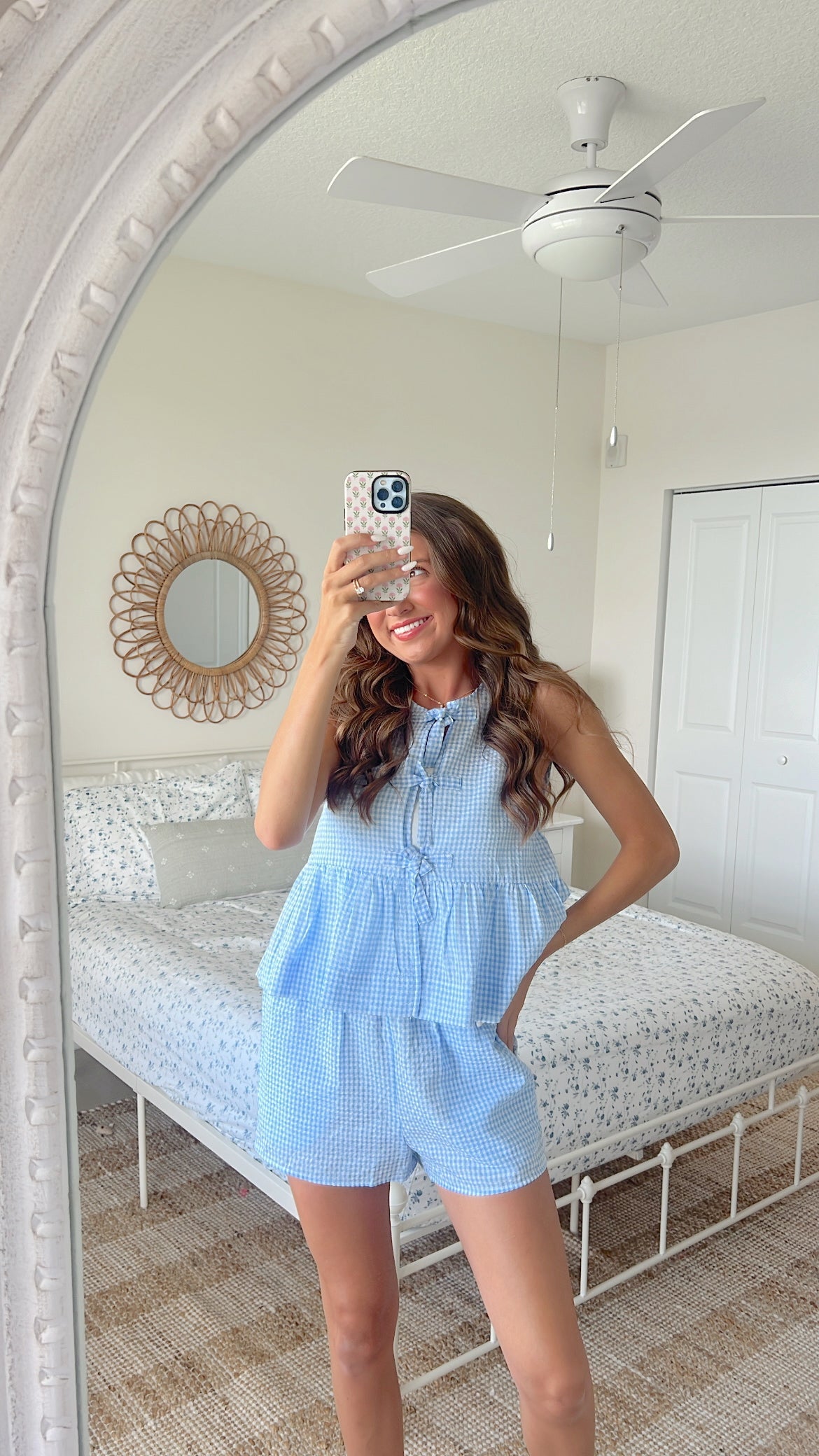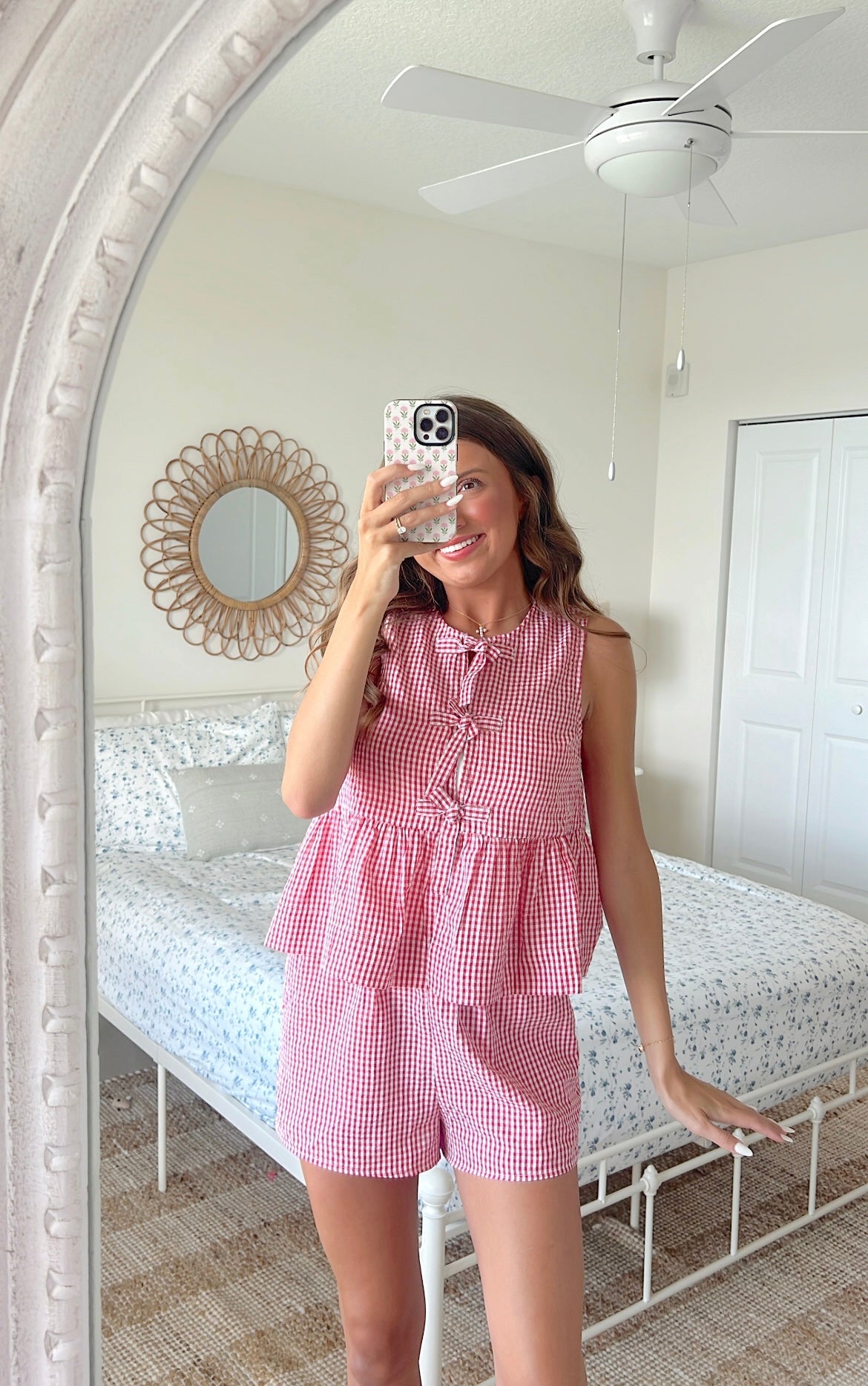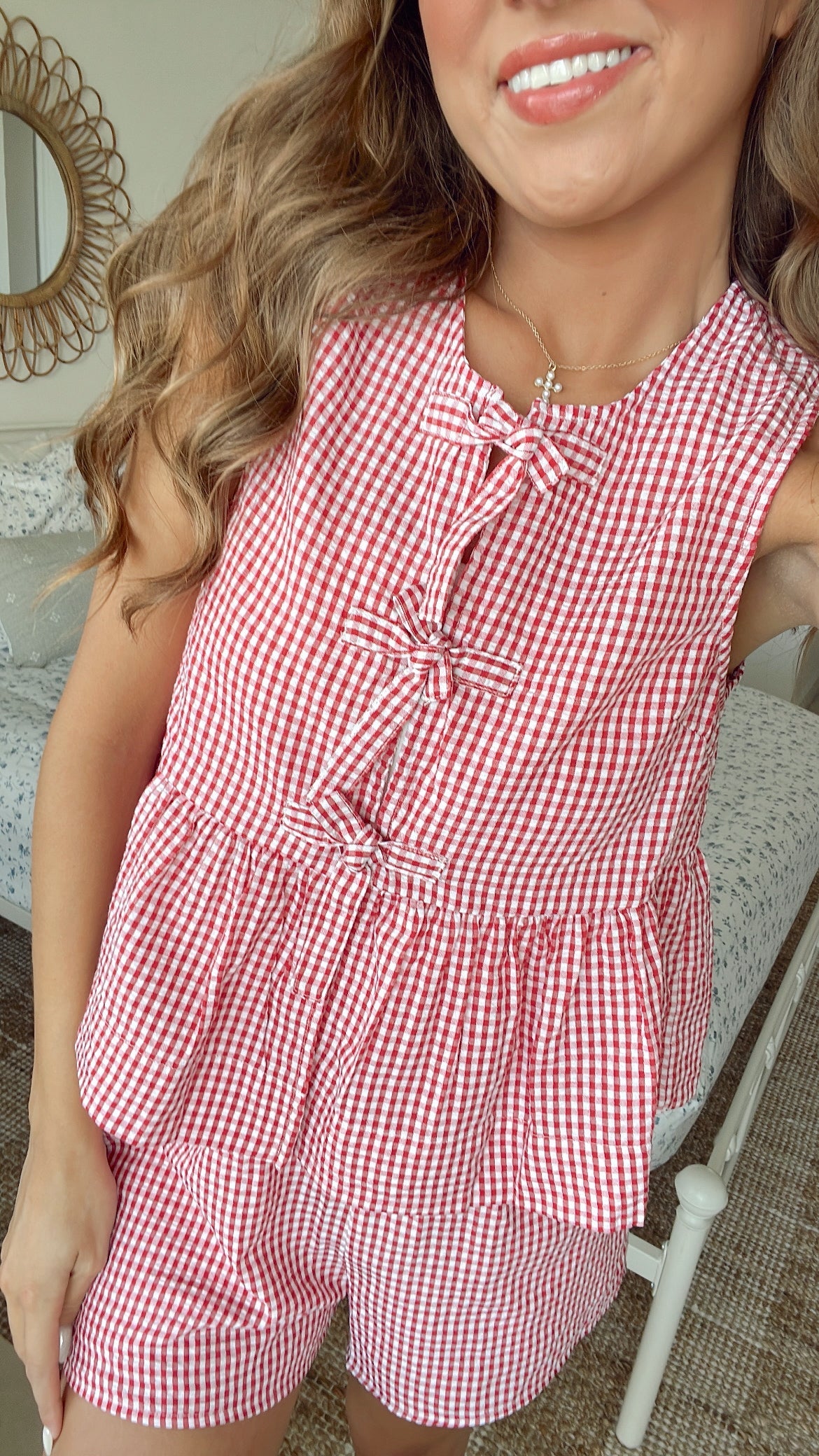 Gingham front tie sleeveless top and shorts set