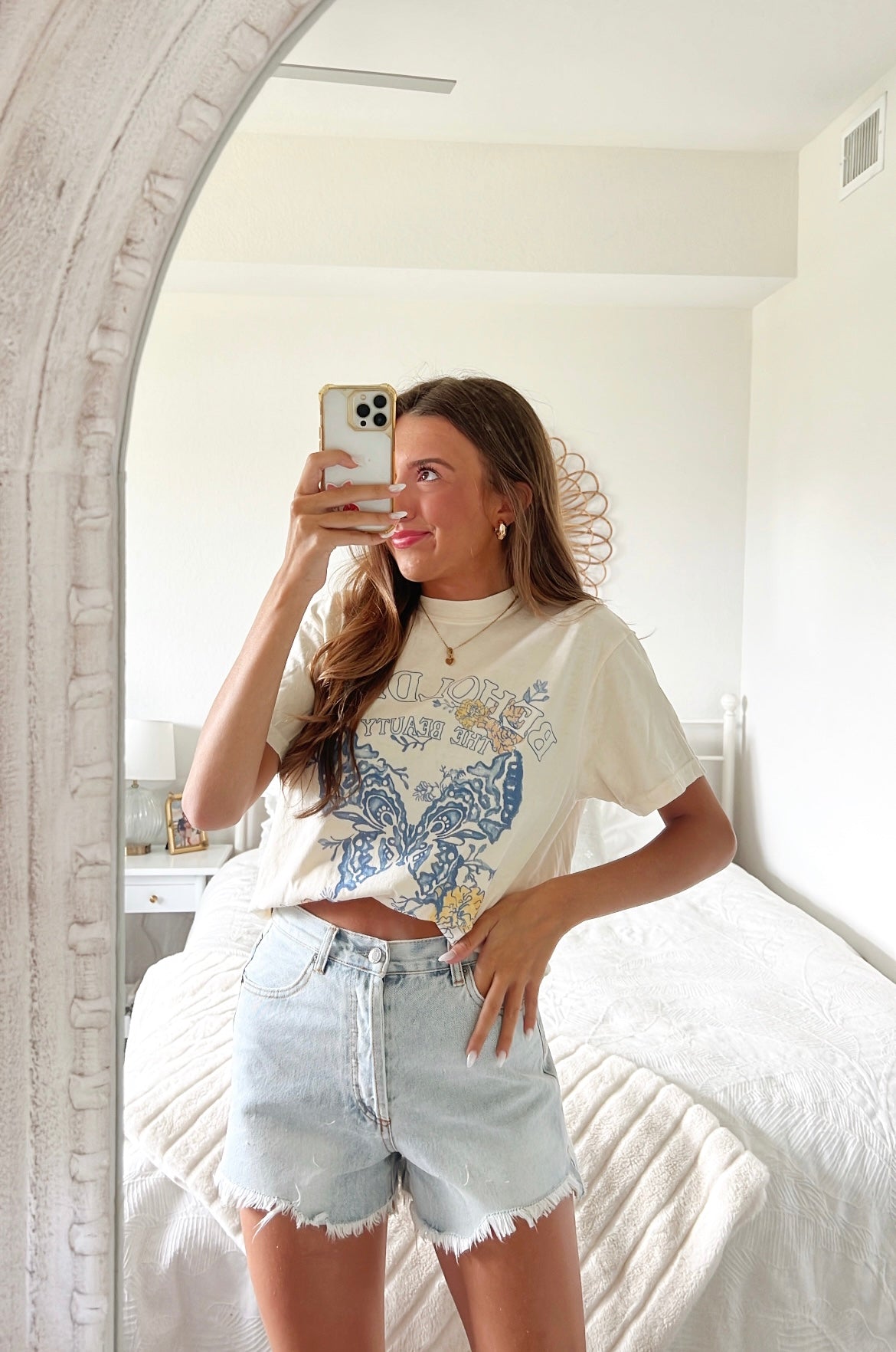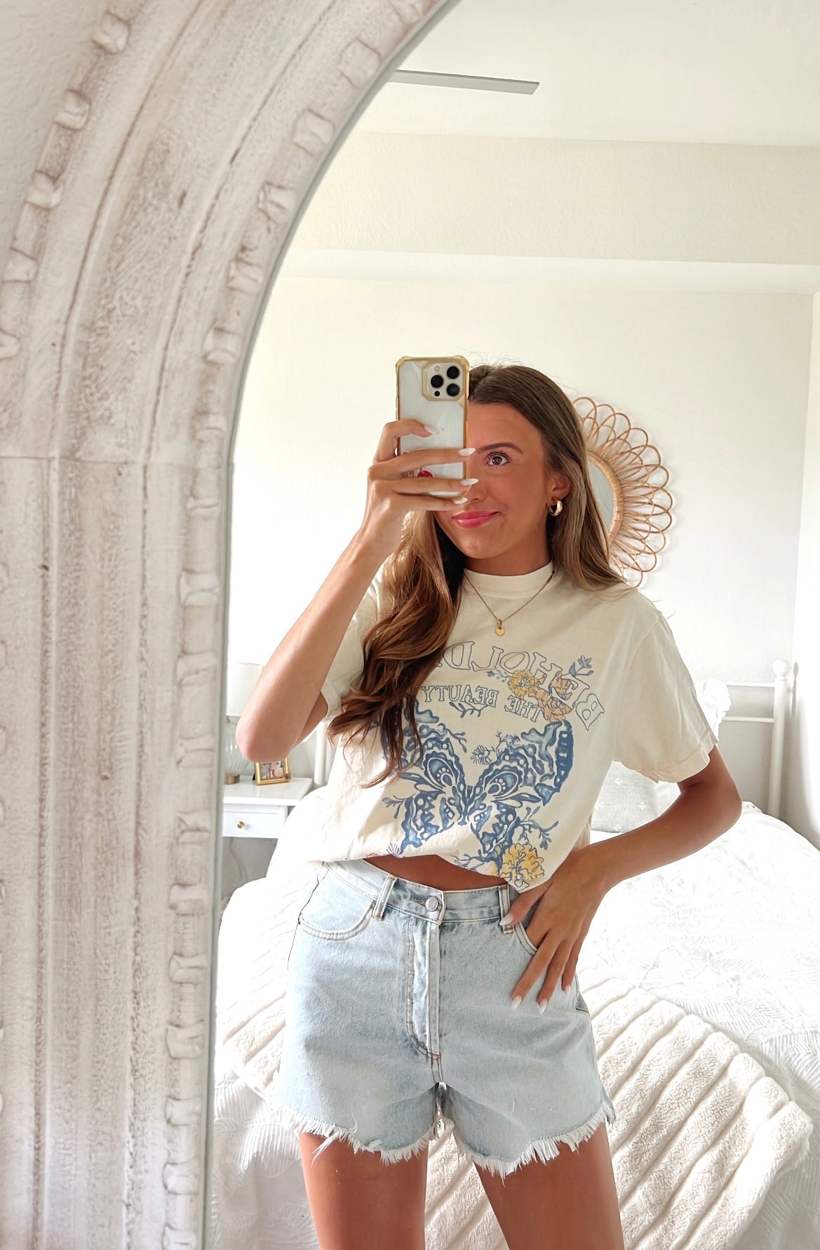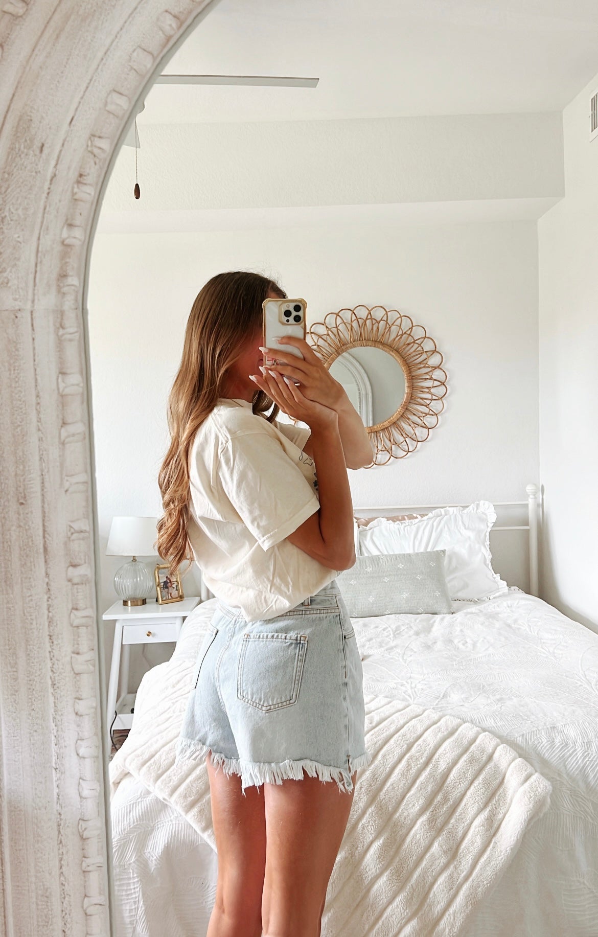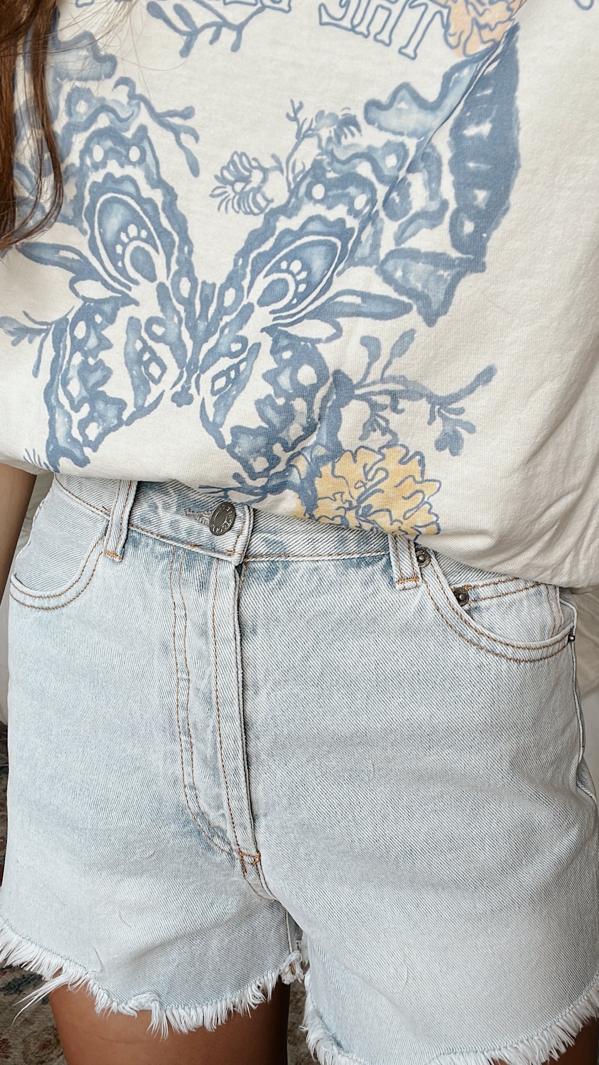 High waisted light wash denim short