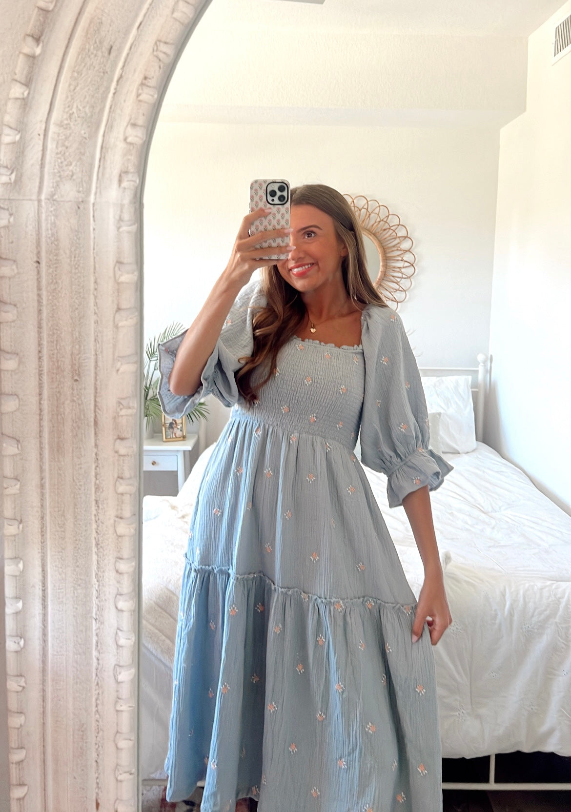 Blue babydoll maxi floral detailed dress