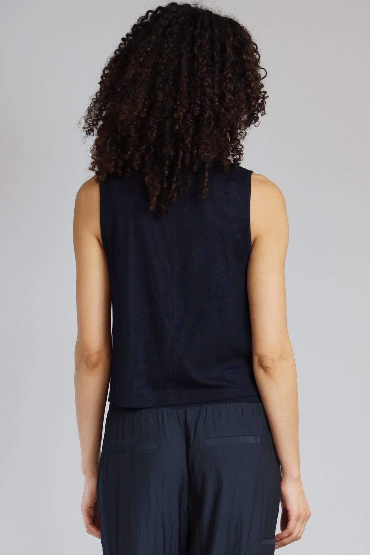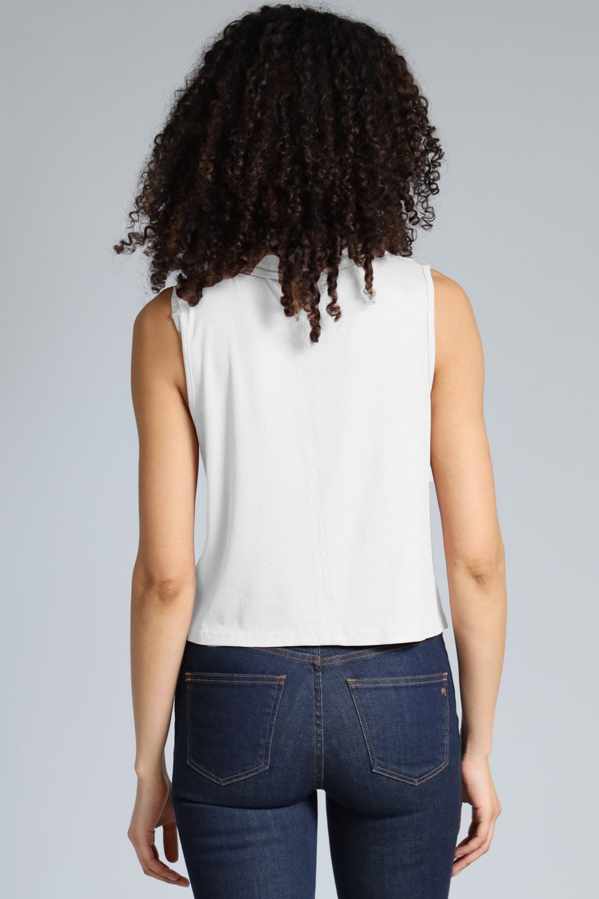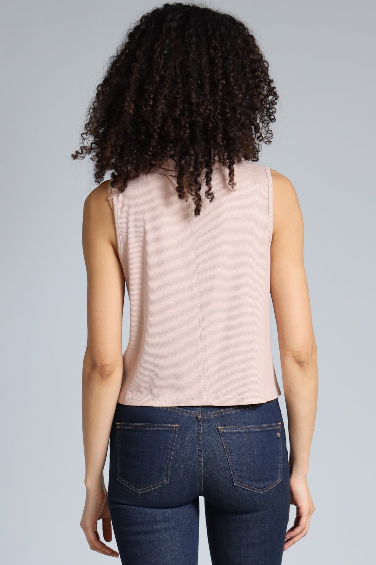 Our Sleeveless Rib Mock Neck Top offers a modern twist on a classic silhouette. Crafted from a soft. ribbed knit. This top provides a comfortable and flattering fit. The mock neckline adds a touch of refinement. while the sleeveless design makes it ideal for layering or wearing on it's own. Perfect for creating a polished look with minimal effort.