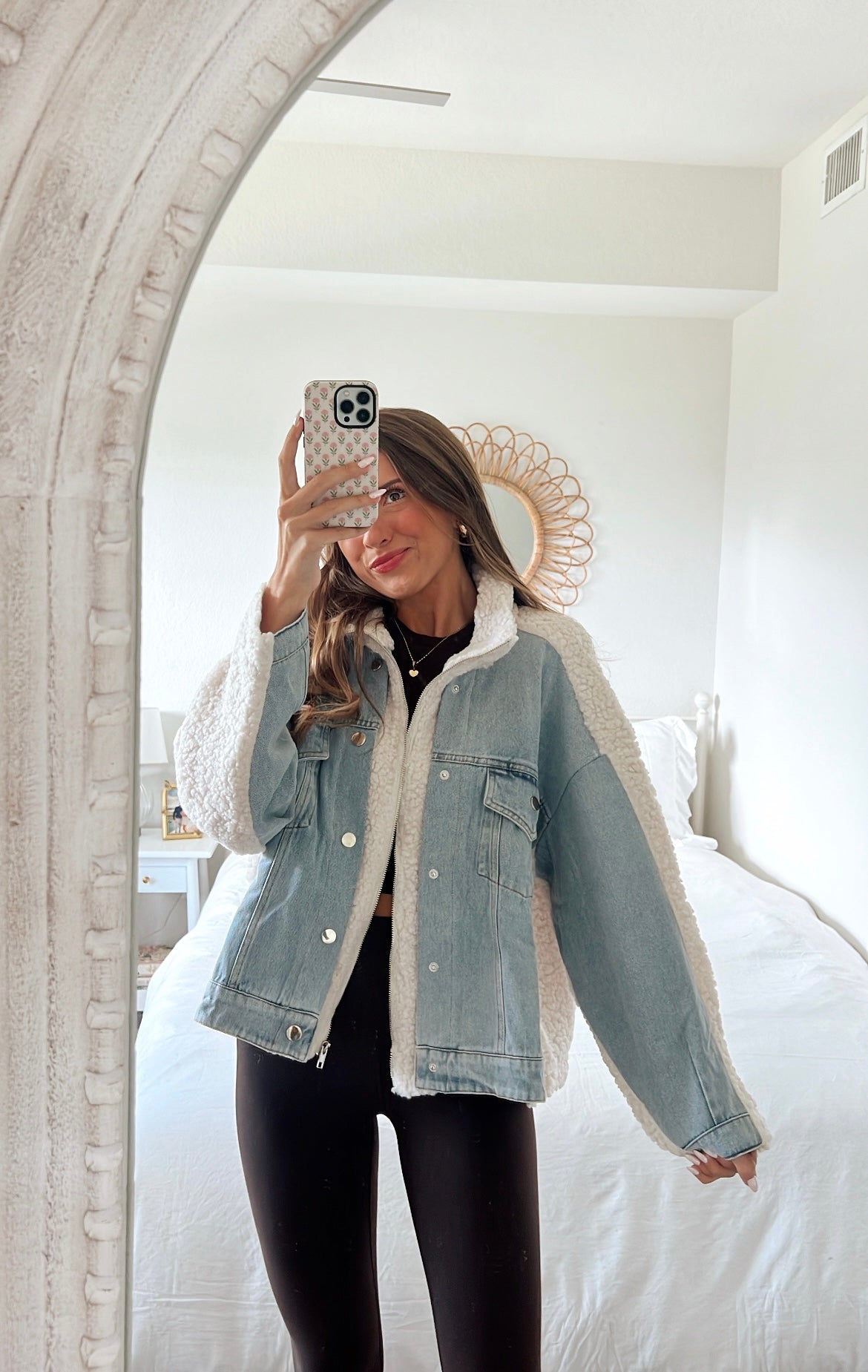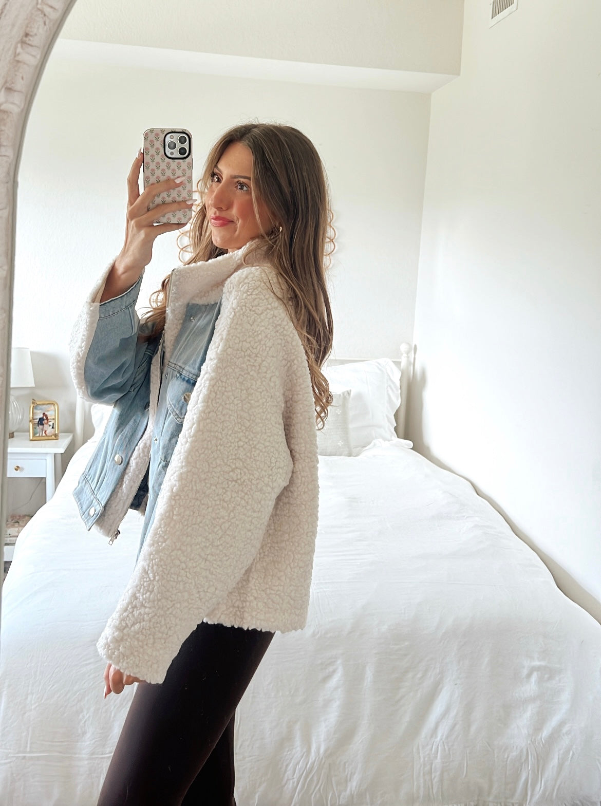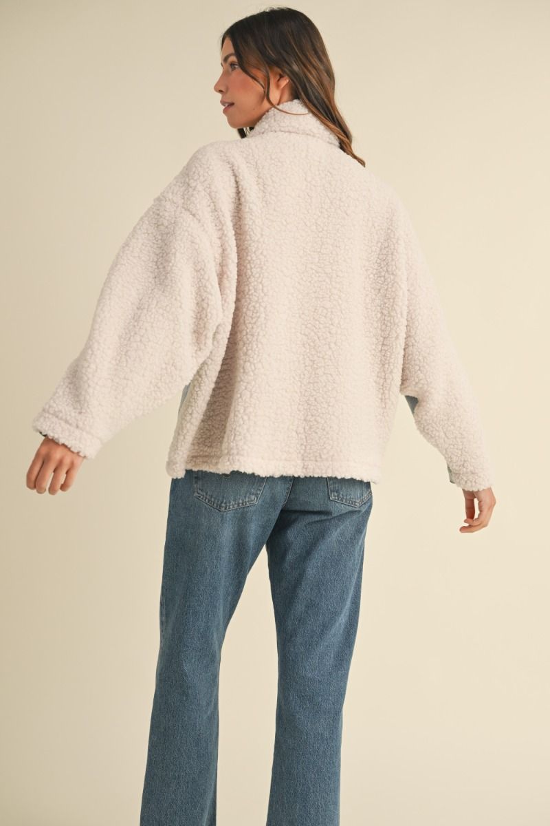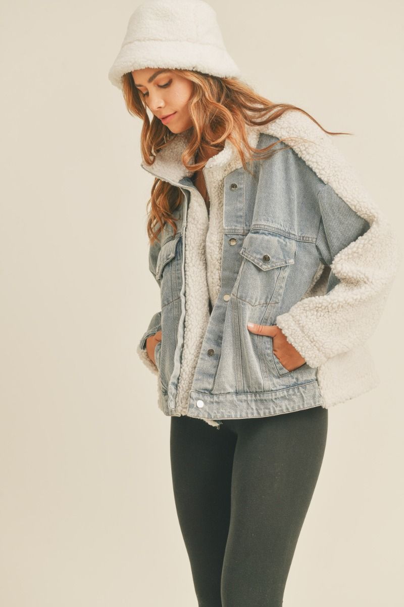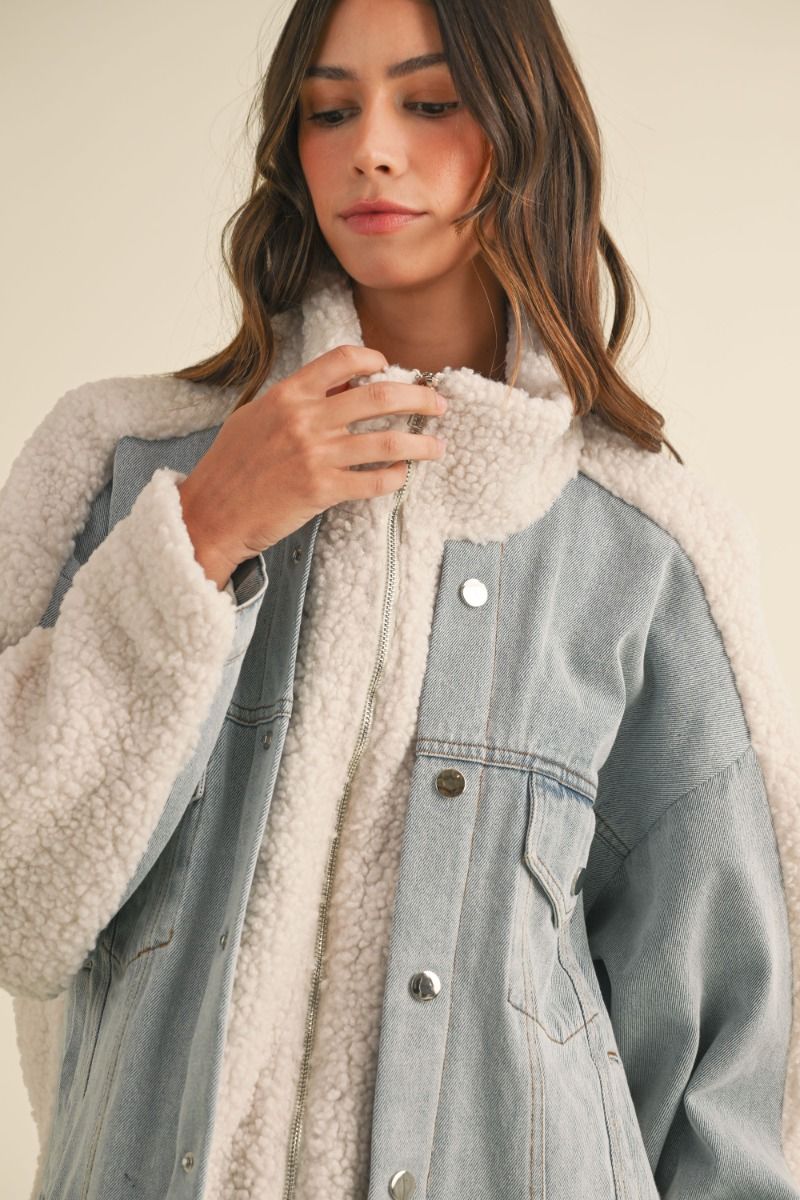 Oversized denim and ivory fleece combo jacket