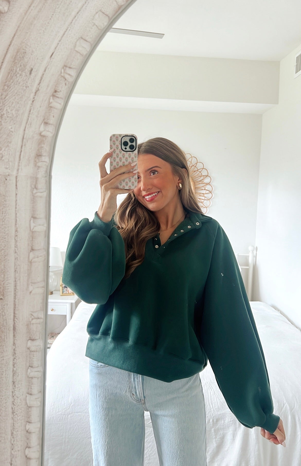 Emerald green piper snap button collared pullover sweatshirt